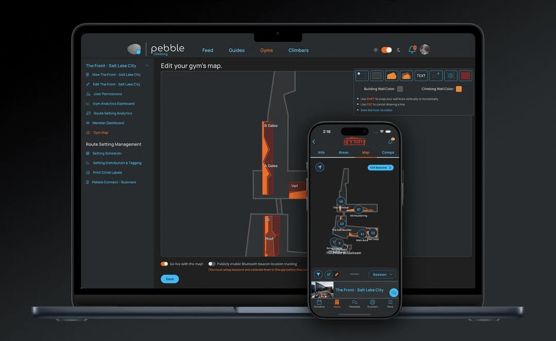 A custom interactive map renderer and editor for climbing gym floor plans, built entirely with React Native Skia and Pixi.js. Climbers can browse routes visually, tap to see details, and navigate gym layouts with fluid gestures. Gym staff can use the built-in editor to create and update maps directly within the app.